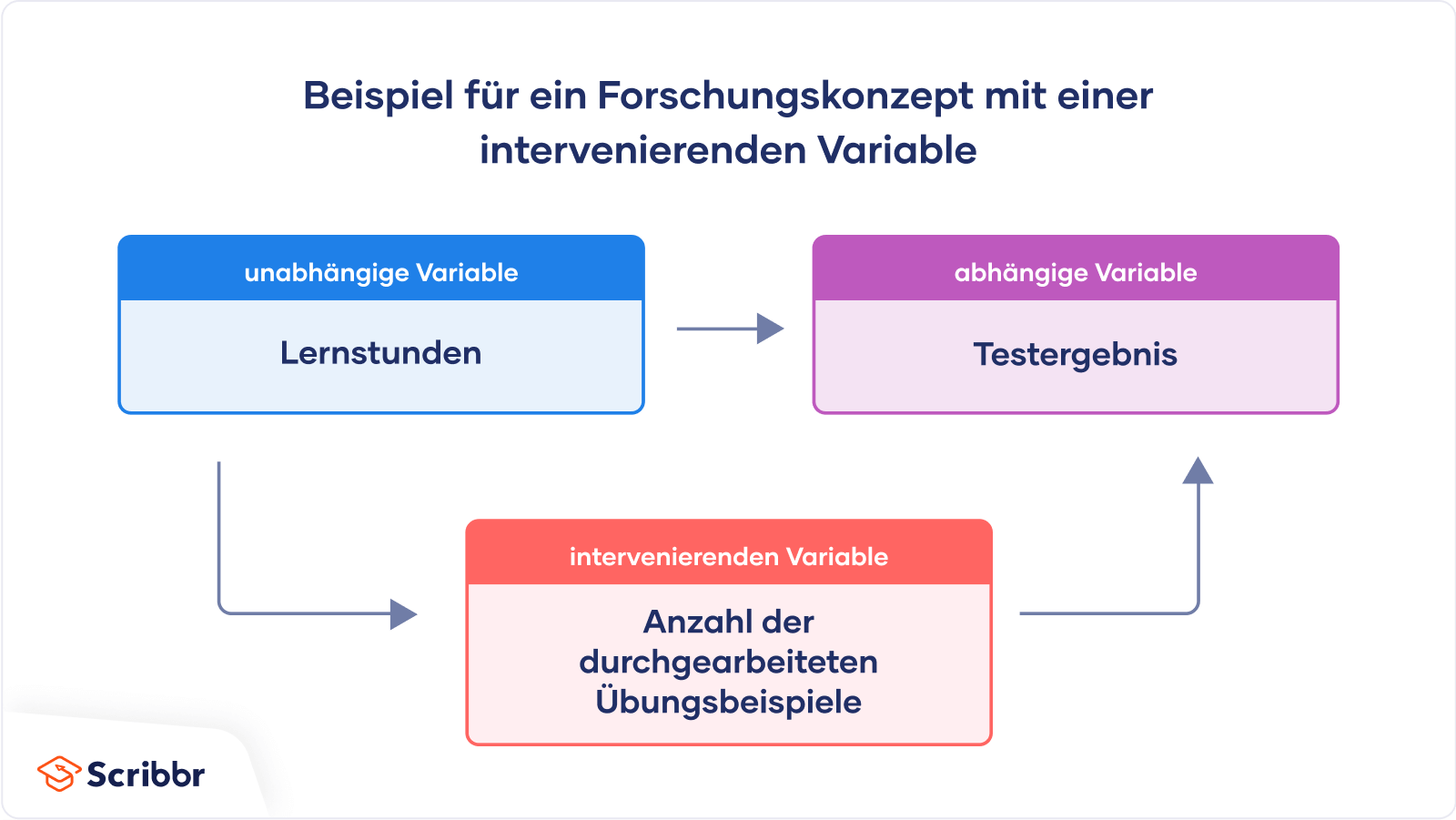 Eine intervenierende Variable steht in einer Ursachen-Wirkungs-Beziehung zwischen der unabhängigen und der abhängigen Variable und ermöglicht es, deren Beziehung besser erklären zu können. Wenn du mit den Begriffen unabhängige und abhängige Variable noch nicht vertraut bist, erfährst du im bereits erwähnten Artikel über das Forschungskonzept einer Bachelorarbeit oder Masterarbeit mehr darüber.