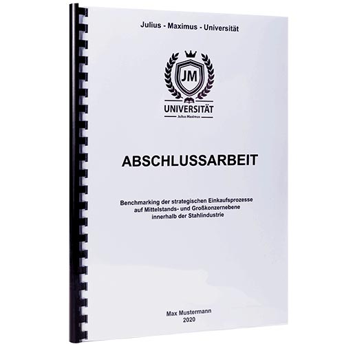 Für kleiner Studienarbeiten ist diese Zurückhaltung in der Optik allerdings genau richtig. Bei Seminararbeiten oder Projektarbeiten sollte nicht bereits mit einer Hardcover-Bindung aufgetrumpft werden, dies sollte man sich für Abschlussarbeiten wie die Bachelorarbeit oder Masterarbeit aufsparen.