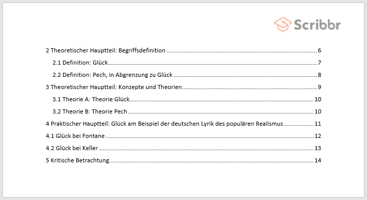 Du kannst deine Gliederung mit einem Inhaltsverzeichnis umsetzen, das sich am Anfang deiner Facharbeit befindet.
