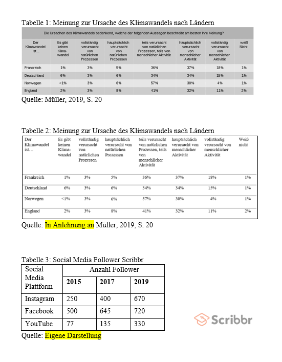 Je nach Richtlinien der Hochschule kann die Beschriftung der Tabelle aber auch zusammen mit der Quellenangabe unter der Tabelle stehen. Wichtig ist, dass du dich für eine Variante entscheidest und diese einheitlich und durchgehend verwendest.